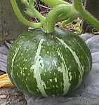 もちろん食べられますが、私は遠慮するわ。 8月に2つ収獲しました。ちょっと形はいびつですがそこは愛嬌!これがあと3個畑に転がってます。 |