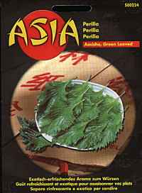 【種まき】 種まき二使う容器は何でも良いです。ある程度大ききなったら移植するので野菜が入っていたプラスチック容器やヨーグルトの容器、市販の種まき用土(ジフィー7)などを使います。苗を菜園に植える場合は、その後の植え替え容器は必要ありませんが、ベランダ菜園をする場合、30〜40cmぐらいの深さの鉢(プランター)が良いです。もちろんご自分のベランダの広さにも関係してあまり大きな鉢は置けない人もいるでしょうが、この鉢の大きさ、深さに比例して根のはりぐあいが微妙に違ってくるのでシソの生育にも関係してくるようです。 ← 2002年より、ミグロで販売されている青シソの種袋。 販売会社によって呼び方も色々あって面白いです。